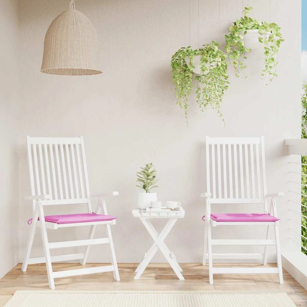 Основното предимство на Възглавници за градински столове 2 бр розови 50x50x4 см текстил - VL361092 е балансът между стил и практичност. За разлика от стандартните текстилни подложки, които лесно задържат прах и влага, Оксфорд материята е дишаща, но същевременно отблъсква леки разливи на течности. Това прави възглавниците изключително хигиенични при ползване на открито. Дебелината от 4 см осигурява достатъчно омекотяване, без да променя височината на сядане, а системата от връзки гарантира, че те няма да се хлъзгат по повърхността на мебелите.