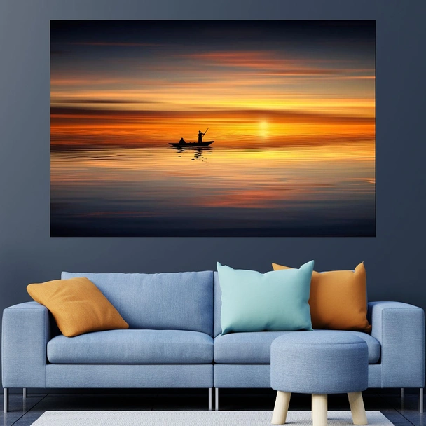 Декорация за стена (картина, пано) с мотив "Риболов по залез слънце - картина пано за стена". Изработена от олекотено PVC с дебелина 5 мм или канава от 100% памук, опъната върху дървена подрамка с дебелина 5 см. Изображението се печата с висококачествен UV печат, което е гаранция за запазване на цветовете с години!